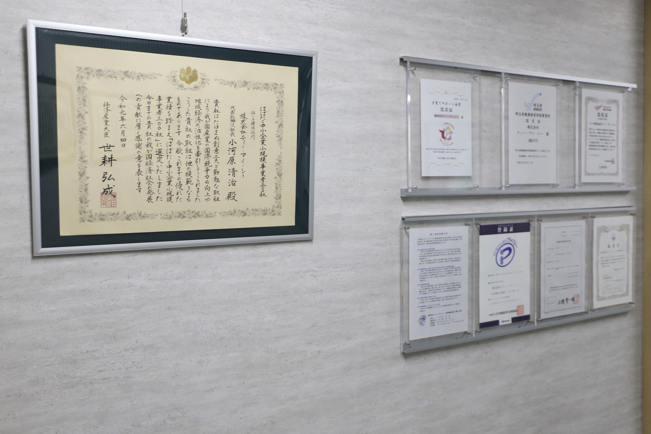 育児休業の取得も推進し、最長で1年間取得できる。男性社員も含め取得率は100パーセントで、2025年は女性2名、男性2名が取得した。さまざまな制度を活用し、仕事と子育てを両立させている女性社員もいるなど多様な働き方を推進していることから、2023(令和5)年に「埼玉県 多様な働き方実践企業 プラチナ認定」を受けた。2024年には「くるみんプラチナ認定」を受け、2024年 11月には、男性の育児休業取得を後押しする埼玉県が創設した「第1回埼玉PX大賞」の奨励賞を受賞した。キャリアアップ支援として、資格取得や資格の維持費用支援をするほか、社内外の研修費用も支援している。